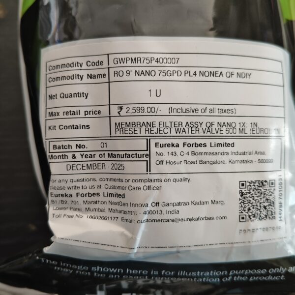This kit contains genuine Aquaguard filters, and customers can verify authenticity by scanning the QR code printed on the packet. Once scanned, it will display the list of compatible RO models and kits, helping you confirm suitability before installation.