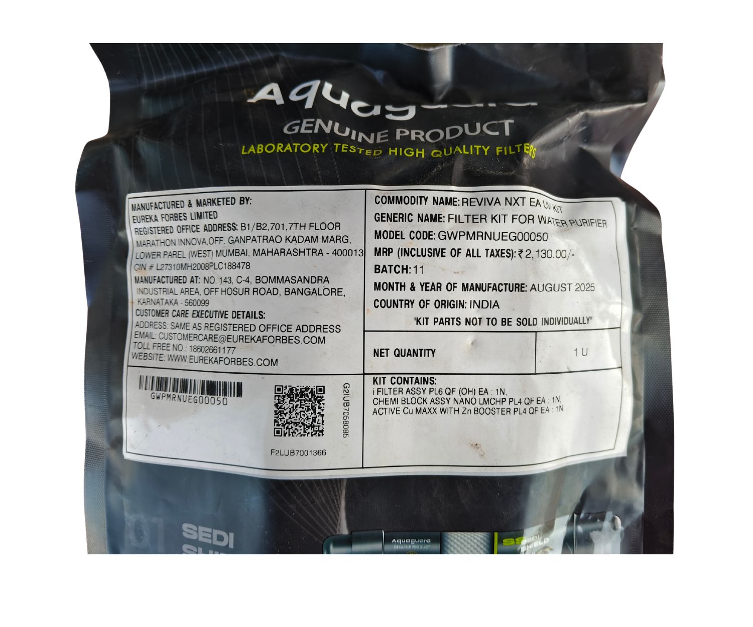 When your RO system requires servicing, this kit offers a convenient solution to replace old filters, ensuring your water purifier continues to deliver high-quality, purified water. Easy to install and highly effective, the Aquaguard Reviva Nxt EA UV Kit keeps your water purifier functioning at its best, providing your family with safe, healthy drinking water. Note – This kit does not includes invoice and filters do not carry any warranty due to its special price including delivery of product.