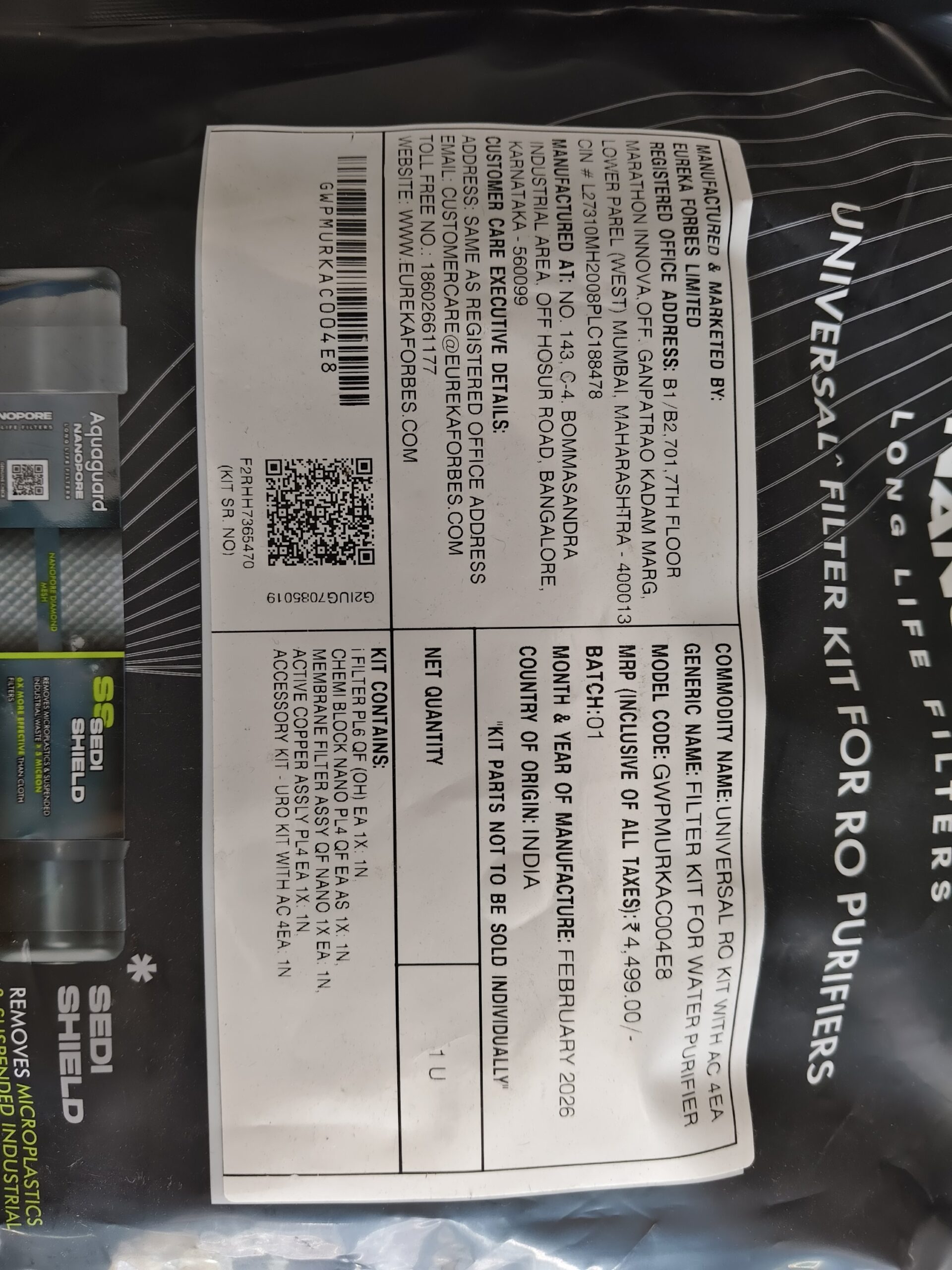 Aquaguard Universal RO kit with AC 4EA