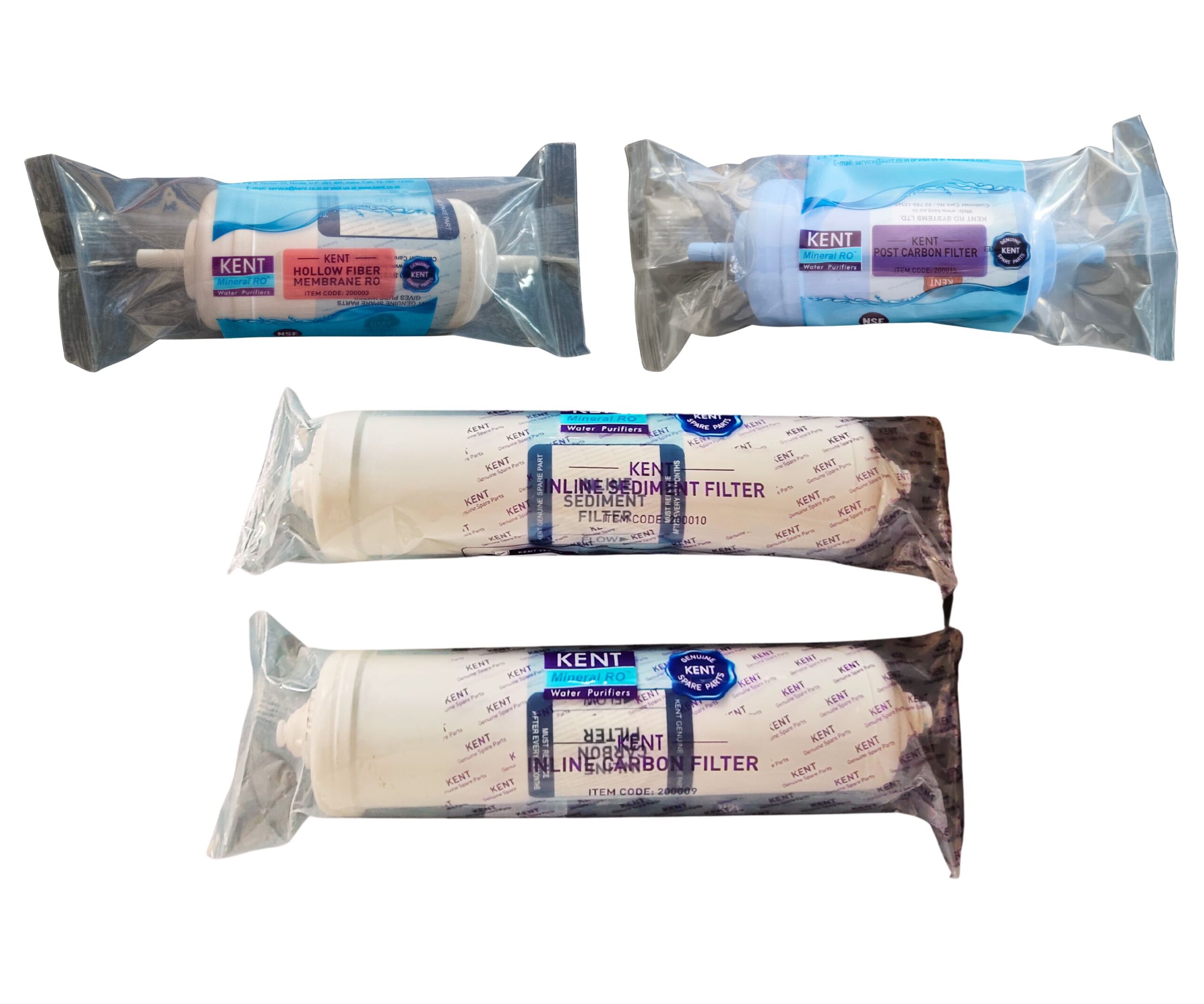 Kent Sediment Filter, Carbon filter, Hollow Fiber Membrane and Post Carbon Filter for RO